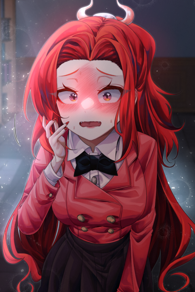 Her face had been red like a carrot for a while, and her mouth was slightly open.